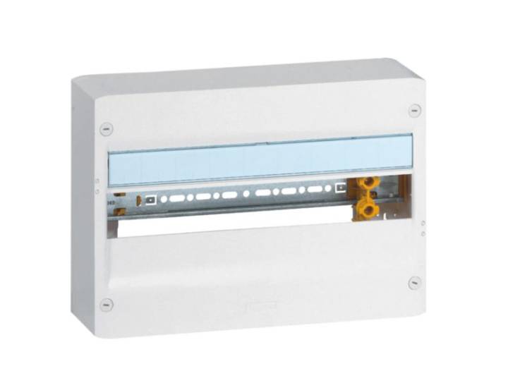 Drivia 18, coffret saillie 18 modules par rangée, pouvant s'installer sur goulotte GTL, dans bac d'encastrement ou sur mur
