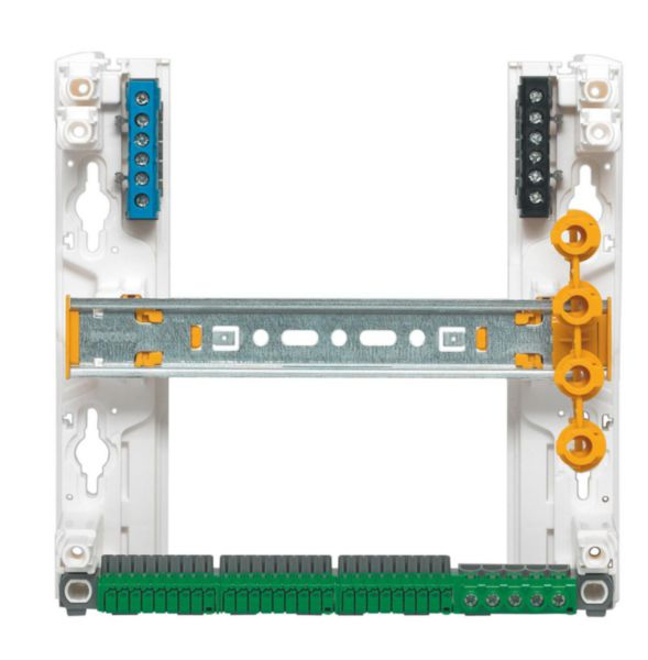 Livré avec : - bornier à connexion automatique IP2X pour conducteurs de protection - obturateurs séparables par module et demi-module - accessoires de pré-fixation sur goulotte GTL (ou sur mur) Drivia clip - accessoires de jumelage horizontal/vertical (pour 2 coffrets ou coffret + platines) Drivia easy - porte plans adhésif - planche d'étiquettes et bandeau de repérage des appareils modulaires - 1 porte-étiquette par rangée