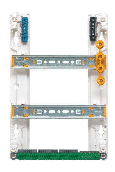 Livré avec : - bornier à connexion automatique IP2X pour conducteurs de protection - 1 bornier Phase et 1 bornier Neutre IP2X - obturateurs séparables par module et demi-module - accessoires de pré-fixation sur goulotte GTL (ou sur mur) Drivia clip - accessoires de jumelage horizontal/vertical (pour 2 coffrets ou coffret + platines) Drivia easy - porte plans adhésif - planche d'étiquettes et bandeau de repérage des appareils modulaires - 1 porte-étiquette par rangée