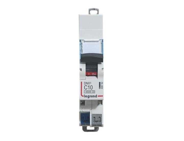 Disjoncteur DNX³ uni + neutre 230V~ pouvoir de coupure : - 4500A conforme à la norme NF EN 60891-1 - 230V~ - 50Hz pour les installations résidentielles - 6kA conforme à la norme EN 60947-2 - 230V~
