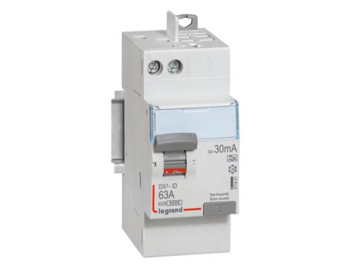 DX³-ID interrupteur différentiel modulaire bipolaire, détecte les fuites de courant dues à des défauts d'isolement et coupe immédiatement l'alimentation du circuit concerné lors d'un contact accidentel avec le courant