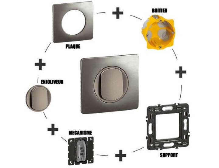 Prise de courant Céliane à compléter d'un support universel Batibox et à combiner avec un enjoliveur et une plaque de finition